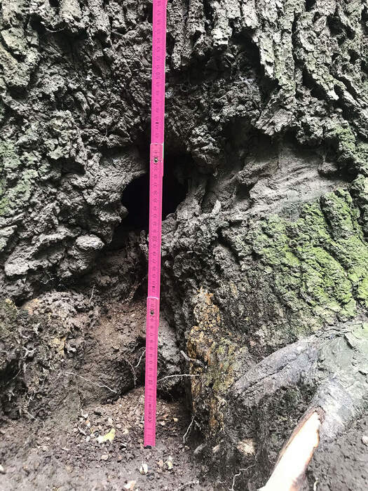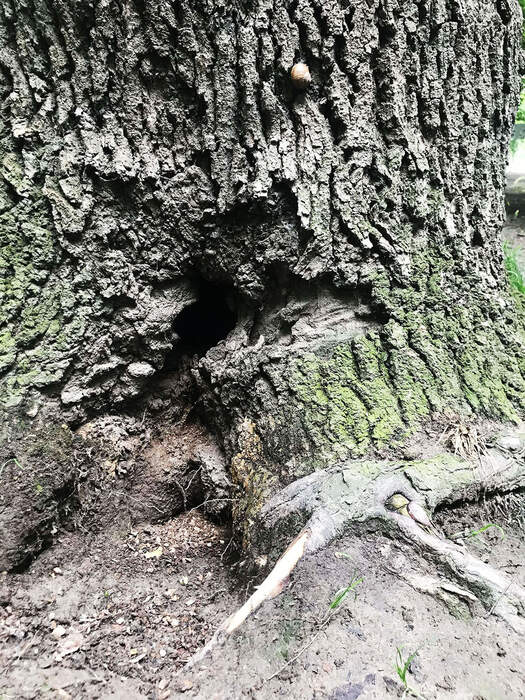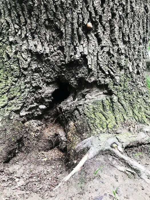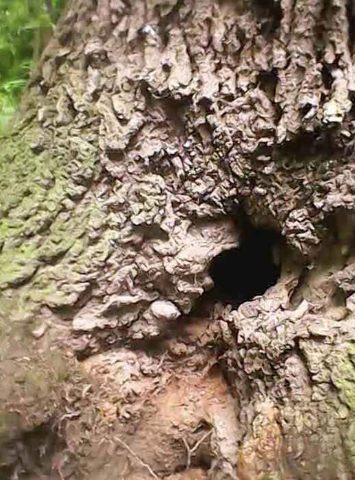 The microclimate inside a tree cavity is quite stable compared to its exterior environment. The thick bark and decayed wood provide insulation, protecting the interior from extreme temperature changes. Tree cavities also offer protection from moisture, sheltering its inhabitants from rainfall. However, the decayed wood inside the cavity still retains some moisture, which can help regulate its humidity levels, creating a suitable microhabitat for certain insects or fungi that thrive in moist conditions.