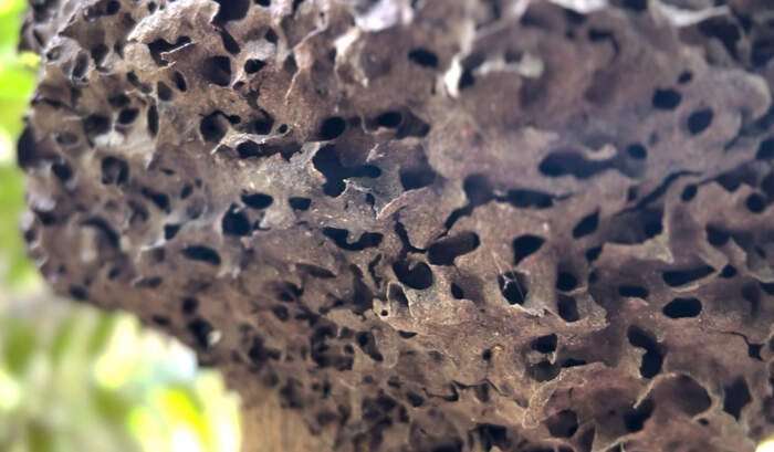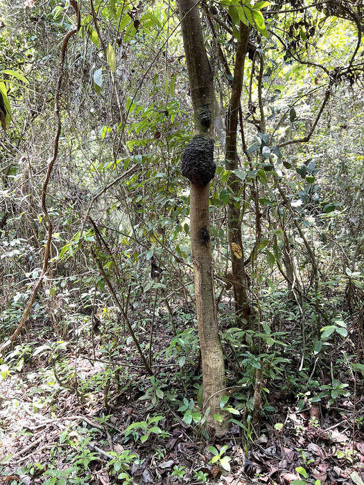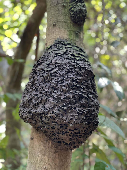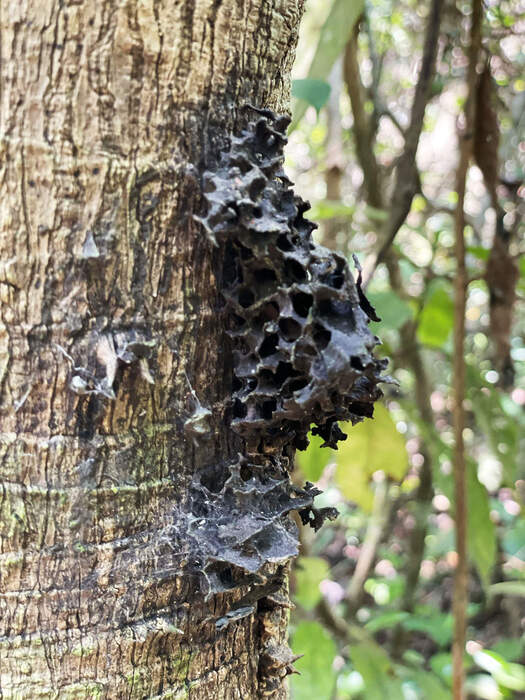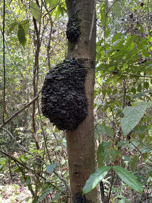 These ants typically select moist, shaded areas for nest construction, often found within dense foliage or decaying wood. The microclimate inside the nests is regulated by the ants' construction techniques, which maintain a stable, humid environment that is crucial for their survival and the development of their larvae.